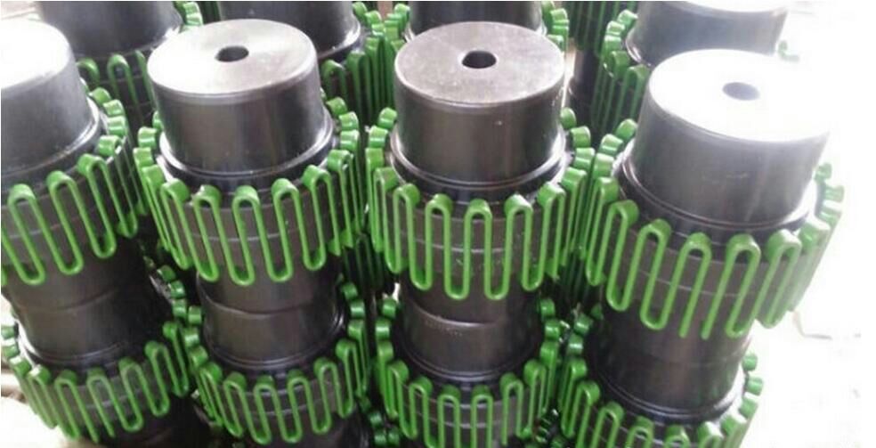 蛇形彈簧聯(lián)軸器其主要結(jié)構(gòu)是由兩個(gè)半聯(lián)軸節(jié),兩個(gè)半外罩,兩個(gè)密封圈及蛇形彈簧片組成。它是靠蛇簧嵌入兩半聯(lián)軸節(jié)的齒槽內(nèi)來傳遞扭矩,聯(lián)軸器以蛇形彈簧片嵌入兩個(gè)半聯(lián)軸節(jié)的齒槽內(nèi),來實(shí)現(xiàn)主動(dòng)軸與從動(dòng)軸的鏈接。運(yùn)轉(zhuǎn)時(shí),是靠主動(dòng)端齒面對(duì)蛇簧的軸向作用力帶動(dòng)從動(dòng)端,來傳遞扭矩,如此在很大程度上避免了共振現(xiàn)象發(fā)生,且簧片在傳遞扭矩時(shí)所產(chǎn)生的彈性變量,使機(jī)械系統(tǒng)能獲得較好的減振效果,其平均減振率達(dá)36%以上。